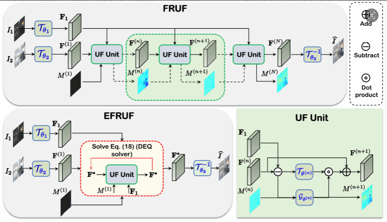 图2 FRUF 与 EFRUF 图像融合方法整体架构及基本单元示意图